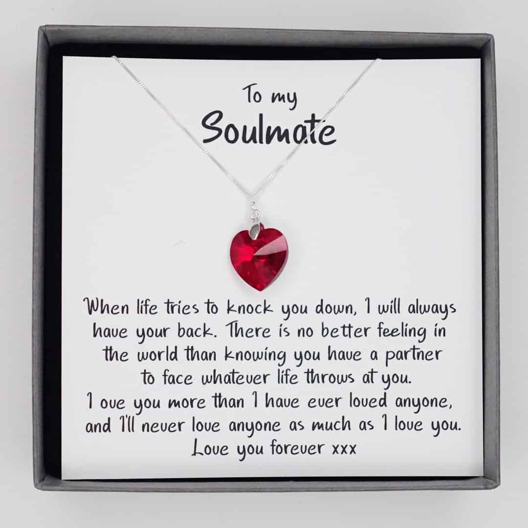 Celebrate your soulmate’s unwavering support and love with this stunning red crystal heart pendant. It symbolizes unbreakable commitment and devotion. This pendant is perfect for anniversaries, birthdays, or simply reminding your partner that you’re always there for them.