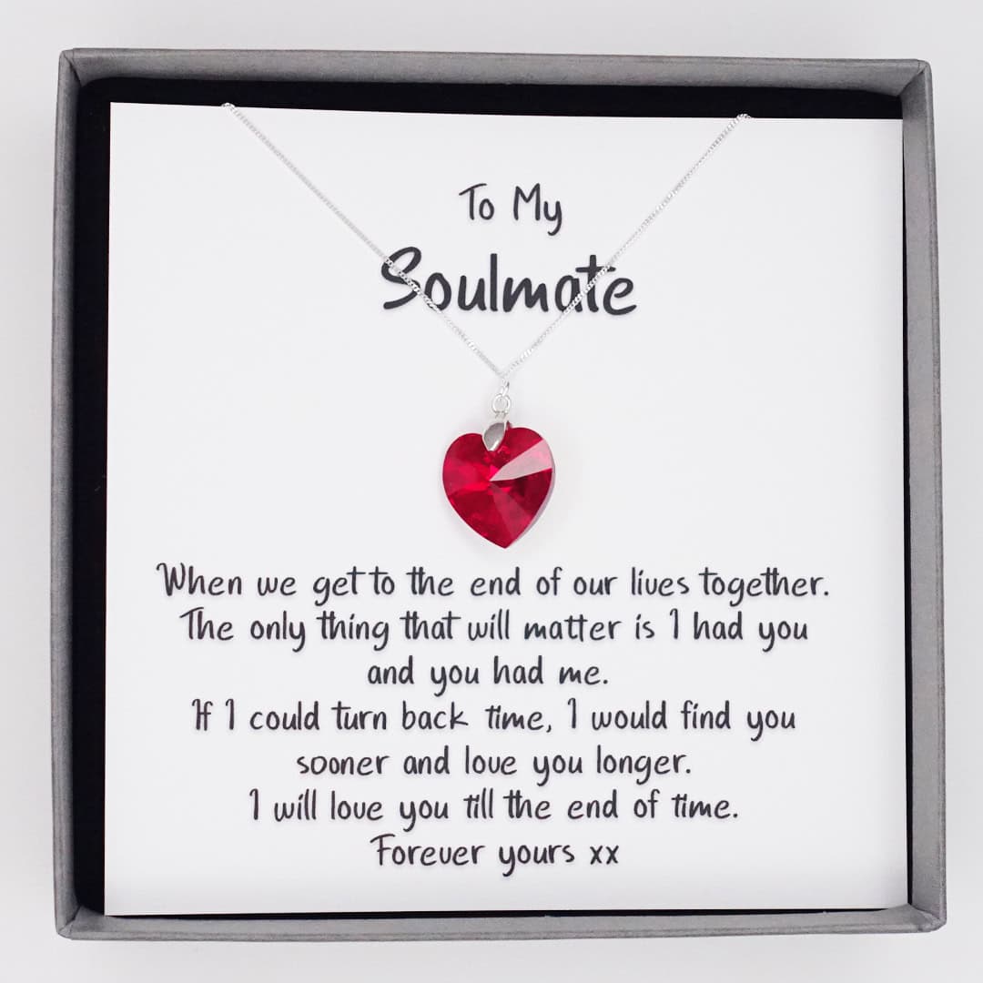 Express your eternal devotion with this stunning red crystal heart necklace, paired with a heartfelt message that speaks to the depth of your bond. This gift celebrates the love that stands the test of time and cherishes your shared moments.